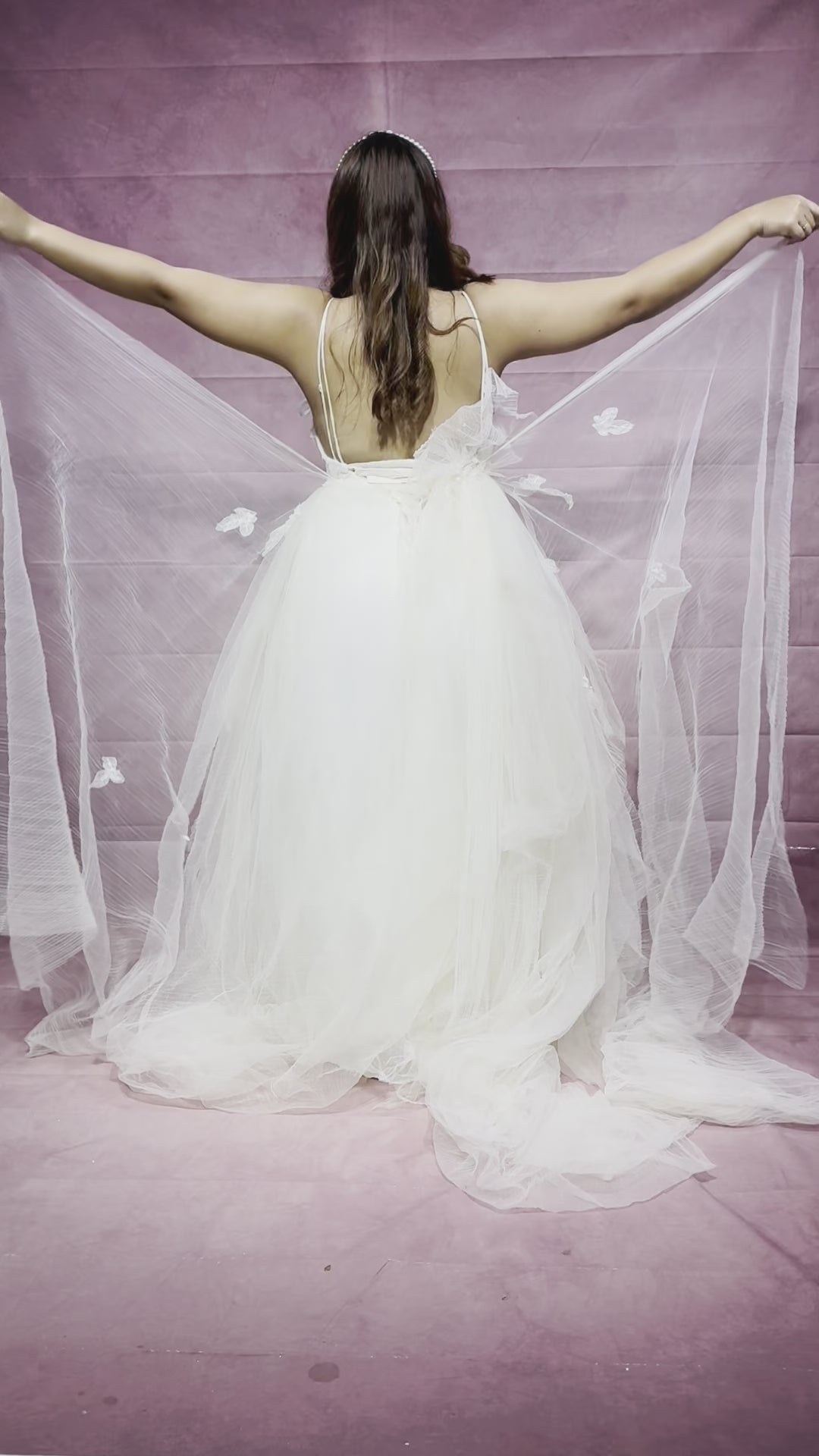 • Full textured tulle skirt with 80cm train
