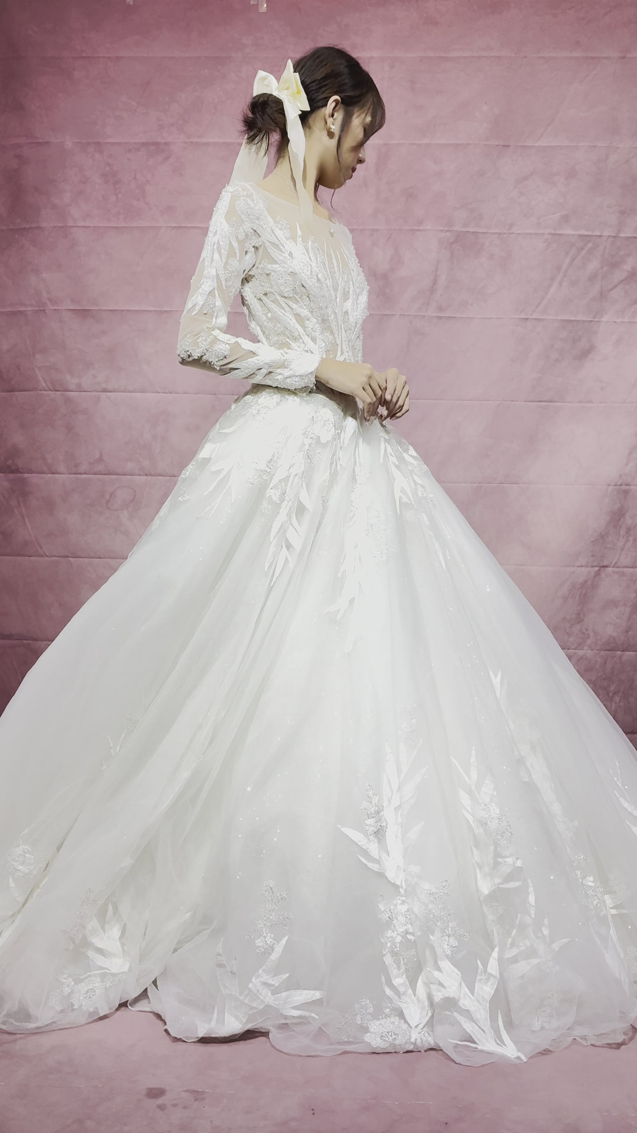 • Professional Cleaning: We recommend taking the gown to a trusted bridal dry-cleaning specialist within a few weeks of wear to preserve its beauty.